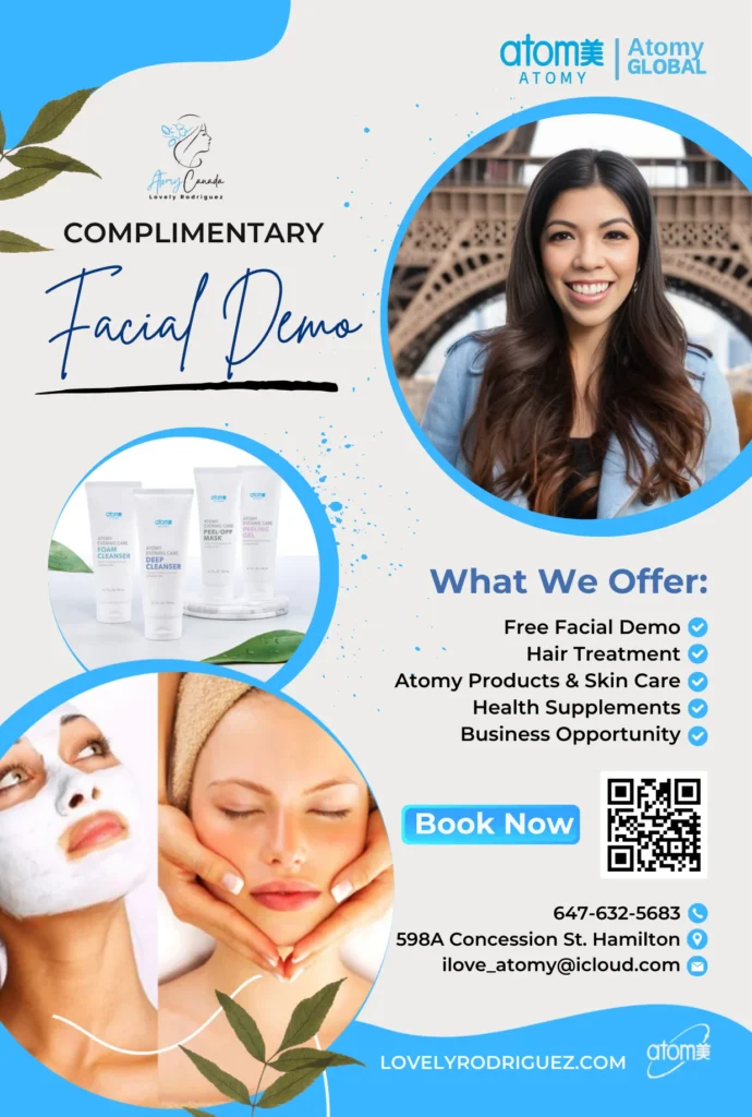 Experience the best facial Atomy has to offer with our Free Facial Demo - provided by the experienced Lovely Rodriguez!